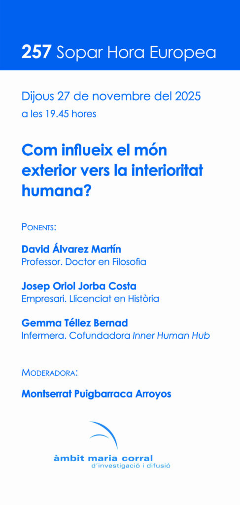 Conrear la interioritat humana demana fer una aturada, i des del silenci, valorar el que hem rebut de l’exterior, amb el desig que el recorregut personal i intransferible es pugui viure amb amor i des de l’amor, aquesta actitud humana que afavoreix els vincles i les relacions.
