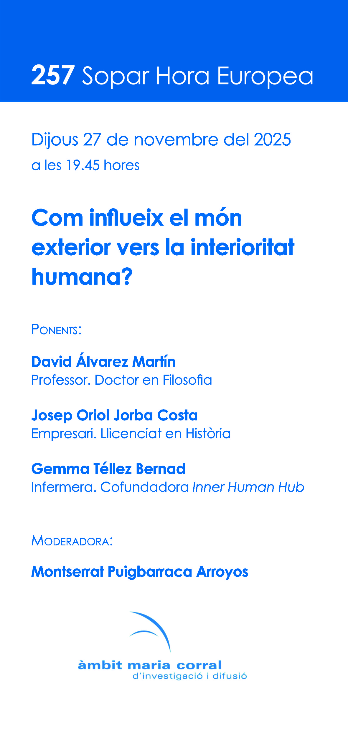 Quan contemplem l’ésser humà globalment, el primer que copsem és el seu exterior, que és allò més visible, però no coneixem el seu interior. Són molts els factors exteriors que influeixen en la formació de la pròpia interioritat: la família, l’educació, la cultura, el país, l’entorn, el clima, els mitjans de comunicació, les noves tecnologies… Si s’està en un entorn de guerra o de violència es viu de forma diferent el propi interior, ja que es generen ressentiments.