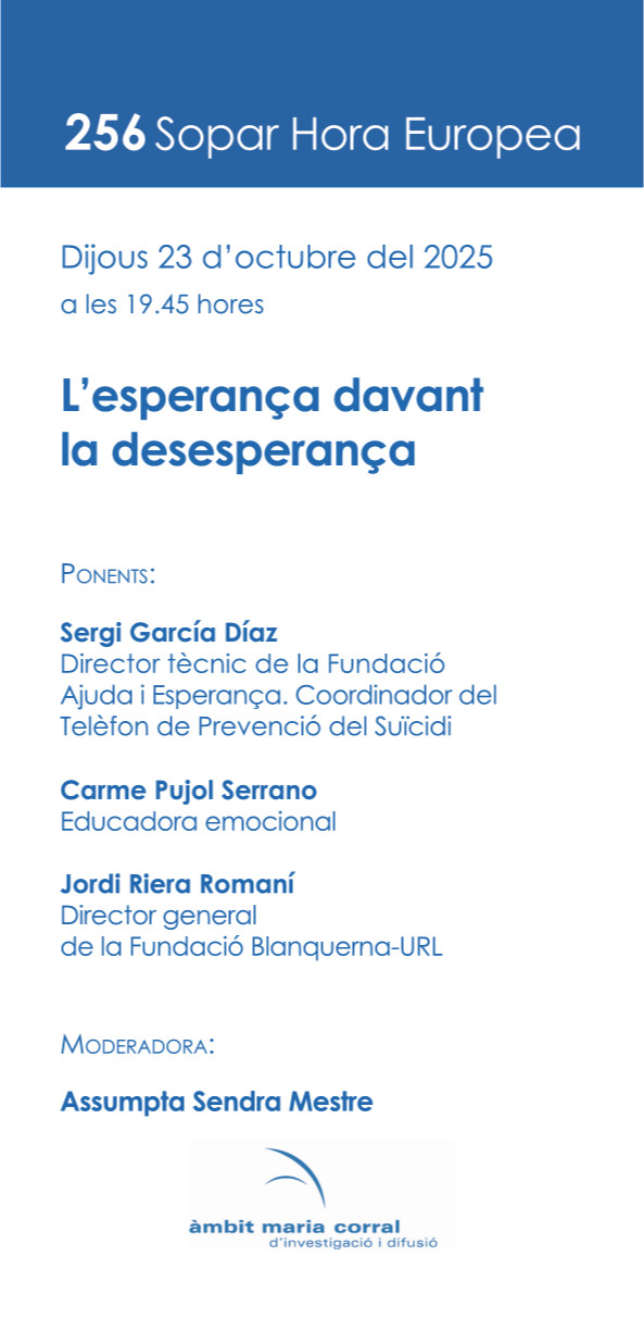Davant situacions desesperants i difícils cal trobar respostes d’esperança humana per continuar endavant. Sabem que l’esperança és dinàmica com el propi ésser i es viu de forma intrínseca perquè forma part de l’essència humana. Cada persona té la pròpia experiència del sentit d’esperança i desesperança, perquè són actituds i reaccions que vivim quotidianament.